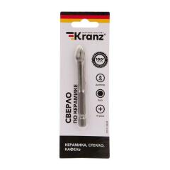 Сверло по стеклу и керамике 8мм 4 грани шестигранный хвостовик Kranz KR-91-0650