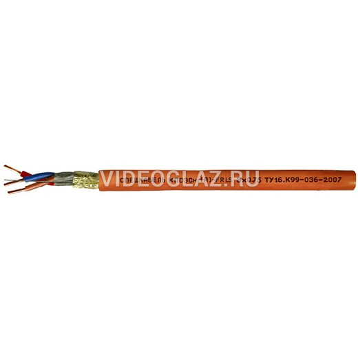 Однопроволочные медные жилы сечением от 0,2 до 2,5мм2 с изоляцией из огнестойкой кремнийорганической резины, с дополнительным огнестойким барьером в виде слюдосодержащей ленты, с общим экраном из алюмолавсановой ленты и с контактным проводником из медной луженой проволоки, в оболочке из ПВХ пластиката пониженной пожароопасности с низким дымо- и газовыделением. Оболочка оранжевого цвета.