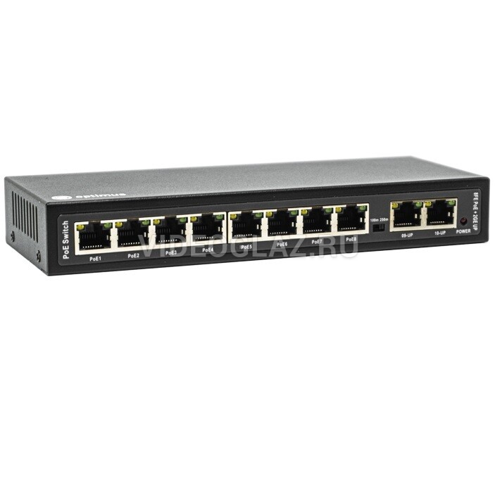 Optimus U1E-8F/2G - неуправляемый PoE-коммутатор с внешним блоком питания. Коммутатор оснащен портами 10/100 Мбит/с с поддержкой PoE (технология передачи питания по сетевому кабелю вместе с данными) к каждому из которых можно подключать сетевые устройства (IP-камеры, IP-телефоны, беспроводные точки доступа).