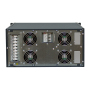 На передней панели устройства расположены четыре светодиодных индикатора («Сеть», «Выход», «Байпас», «Авария») и цифровой ЖК-дисплей для просмотра параметров работы (состояния входной и выходной сети, мощности нагрузки, температуры внутри стабилизатора и др.) и конфигурации, в том числе выбора значения выходного напряжения и режима работы (стандартный, ECO/байпас). Для подключения к сети электропитания и подключения нагрузки используются клеммная колодка и вводной автомат, расположенные на задней панели стабилизатора. Там же находятся два слота для опциональной установки карт мониторинга.