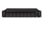 В устройстве используется светодиодная индикация для информирования о состоянии и режиме работы усилителя. Вход каждого канала является балансным, что обеспечивает эффективное подавление помех, наводимых на соединительных кабелях. Дополнительно предусмотрен приоритетный линейный вход, активация которого для каждого канала осуществляется отдельным управляющим сигналом типа 'сухой контакт'. Каждый вход имеет регулятор уровня сигнала, позволяющий избежать искажений, вызванных перегрузкой по входам. Питание устройства осуществляется от сети переменного тока 220...240 В 50 Гц или от внешнего источника постоянного тока 24 В.