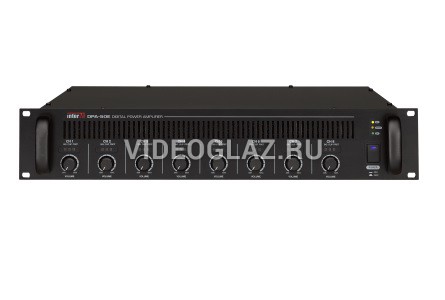 Inter-M DPA-50E - цифровой усилитель мощности предназначен для усиления сигналов линейного уровня звуковой частоты до уровня 70 или 100В, широко используемых в системах оповещения и трансляции. Кроме того для каждого канала предусмотрены выходы для подключения низкоомной нагрузки (8 или 4 Ом). DPA-50E имеет 8 независимых каналов усиления с номинальной выходной мощностью 50 Вт на канал (100В, 70В), 60 Вт на канал (4 Ом), 30 Вт на канал (8 Ом).